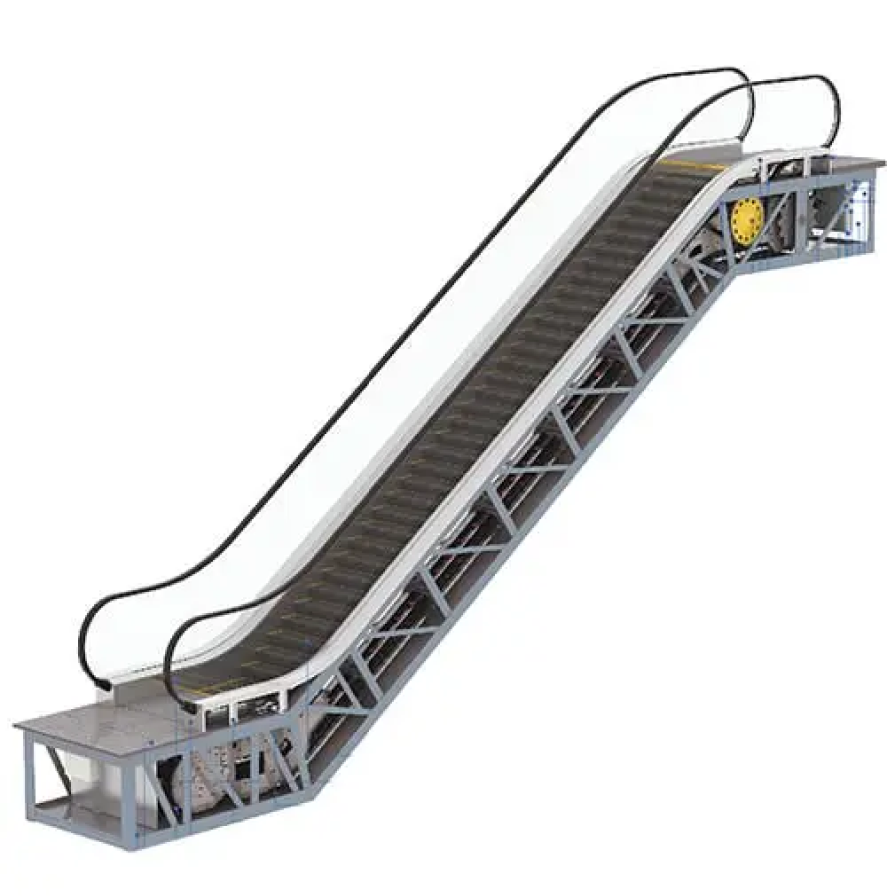 The inner decking of an escalator serves as the platform where passengers stand while using the escalator. It is constructed with materials like metal or reinforced plastic to withstand wear and tear. This surface features a textured pattern for added traction to prevent slipping. Safety features such as skirt panels along the sides and comb plates at the bottom are in place to prevent accidents and ensure a smooth transition on and off the escalator. Additionally, the inner decking allows for easy access for maintenance and may include lighting for visibility and aesthetics, enhancing the overall escalator experience.
